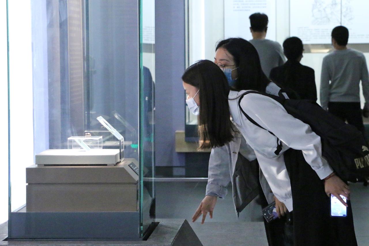 下午2:20,全体人员在海甸校区北门集合,佩戴口罩乘坐大巴前往海南省博物馆。车外风雨晦暝,却无法减少大家参加党日活动的热情;雨天凉意逼人,却无法冷却大家渴望知识的炽热之心。大巴很快到达目的地,在进行入馆检测后,大家进入博物馆,开始自由观展。