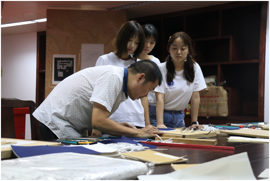 时光伴着蝉声静静流淌,古籍缠绕着墨香熠熠闪光。第二批实践队员们承接了上一批队员的工作,已经完成了中华再造善本(续编)的整理入柜以及宣纸的裁割,接下来在老师们的专业教学下,队员们开始了雕版印刷和线装书装订的体验。