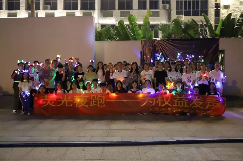 为增进同学们的维权意识,进一步了解权益知识和学生会权益部的部门职能,人文传播学院学生会权益部于2019年11月9日夜晚,在海甸校区新南门广场组织的“荧光夜跑——为权益发声”活动顺利举办。人文传播学院学生会主席钟一凡、副主席孙靖媛,政治与公共管理学院权益部部长敖利婷、李美琪,机电工程学院权益部部长张文俊,动物科技学院权益部部长徐欢,信息与工程学院权益部部长彭代鹏作为本次活动嘉宾出席此次活动。学院部分17、18、19级同学参与此次夜跑。