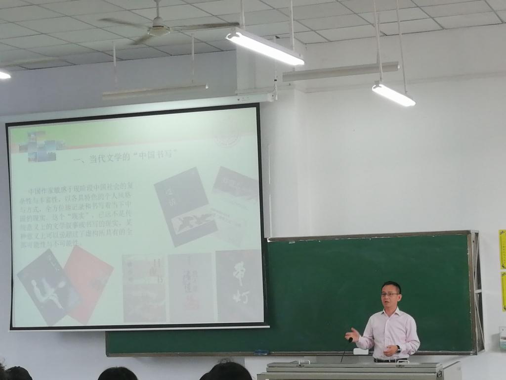 在讲解过程中,季进教授首先从当代文学发展状况的四个方面的观察进行简要介绍。他指出,文学交流的不平等性表现在中国和西方文学的关注度不同,其原因主要在于中国文学本身变化超出西方读者预期、理解与想象范围,因此虽然当代文学产生一定国际影响,但在西方世界属于边缘化和小众化文学,难以成为大众文学。而后,季进教授向同学们简要介绍了翻译与当代文学的传播机制,并提出了关于如何推动当代中国文学传播的几点建议,季进教授首先重点指出,文学翻译在此过程中发挥着重要作用,在传播过程中,应以外语为母语的翻译者来完成这个任务,同时,季进教授强调,应遵循西方惯例建立经纪人制度,形成经纪人或出版者、作家与译者之间连通的良好机制。紧接着,季教授从技术层面提出建议,他表示,文学研究者要组织文学参访活动,通过参加国际性书展或组织作家到西方高校巡回演讲等方式,在技术层面形成良好的推广。最后,季教授针对作为世界文学的当代文学,他表示,在全球化的今天,更要强调中国文学的特殊性和起码中国立场。至此,本次讲座在同学们的热烈掌声中圆满结束。