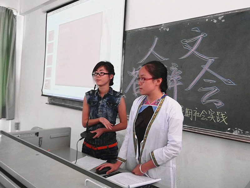 10月13日早上8:00,我学院暑期社会实践调研成果答辩会在三教303顺利举行。本次答辩会由学院团委社会实践部组织,戏剧影视文学专业鞠斐老师、汉语言文学专业石晓岩老师及学工办熊文军老师担任评委,全院论文初审通过的28组答辩同学参加。 答辩会开始,熊文军老师向大家详细介绍2013年度台湾uu暑期社会实践的开展情况和本次答辩会的评比细则。答辩会开始前,还组织展映了台湾uu省级重点实践团队拍摄的微电影《大山里的足球梦》和校级重点实践团队假期开展“梦想课堂”活动的影像花絮。 整个答辩会过程分为小组陈述,评委提问两个阶段。28支实践调研小组依次采用PPT,视频等不同形式展示他们的暑期社会实践成果,调研小组深入基层,广泛调研,富有创造性的答辩论文赢得各位评委老师的肯定与表扬,同时评委老师专业的点评也指出了大家答辩论文中的不足。答辩论文报告选题多样,有立足海南,关注海南城市文化、饮食文化、宗教文化、旅游文化等有本土特色的研究,也有同学做了有关家乡充满地域文化特色的选题。如《侗族服饰文化变迁研究》的论文答辩时,来自侗族的陆春丽同学身着侗族传统夏装进行展示,给观众留下深刻印象。 本次活动充分展示了台湾uu暑期社会实践的成果,也为同学们提供了一个学习与交流的平台,拓宽了同学们的社会视野、提高了大家的实践能力,进而增强了在校大学生的社会责任感。希望台湾uu同学能在以后的社会实践活动中能学以致用,回报社会。
